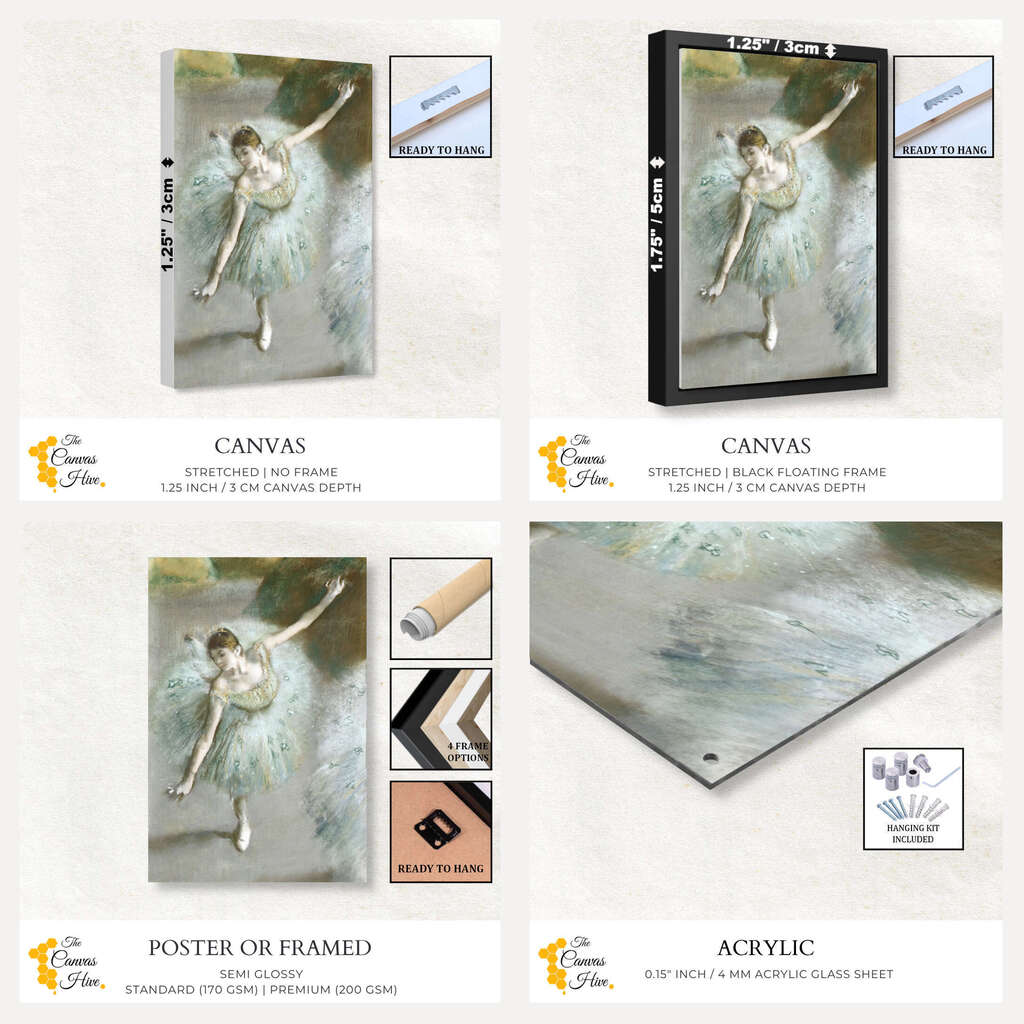 High-quality canvas material that has been tightly stretched and secured over a wooden frame. Comes with a pre-installed sawtooth hanger or hanging wire for easy hanging. The frame is made from high quality, low-flex pinewood.