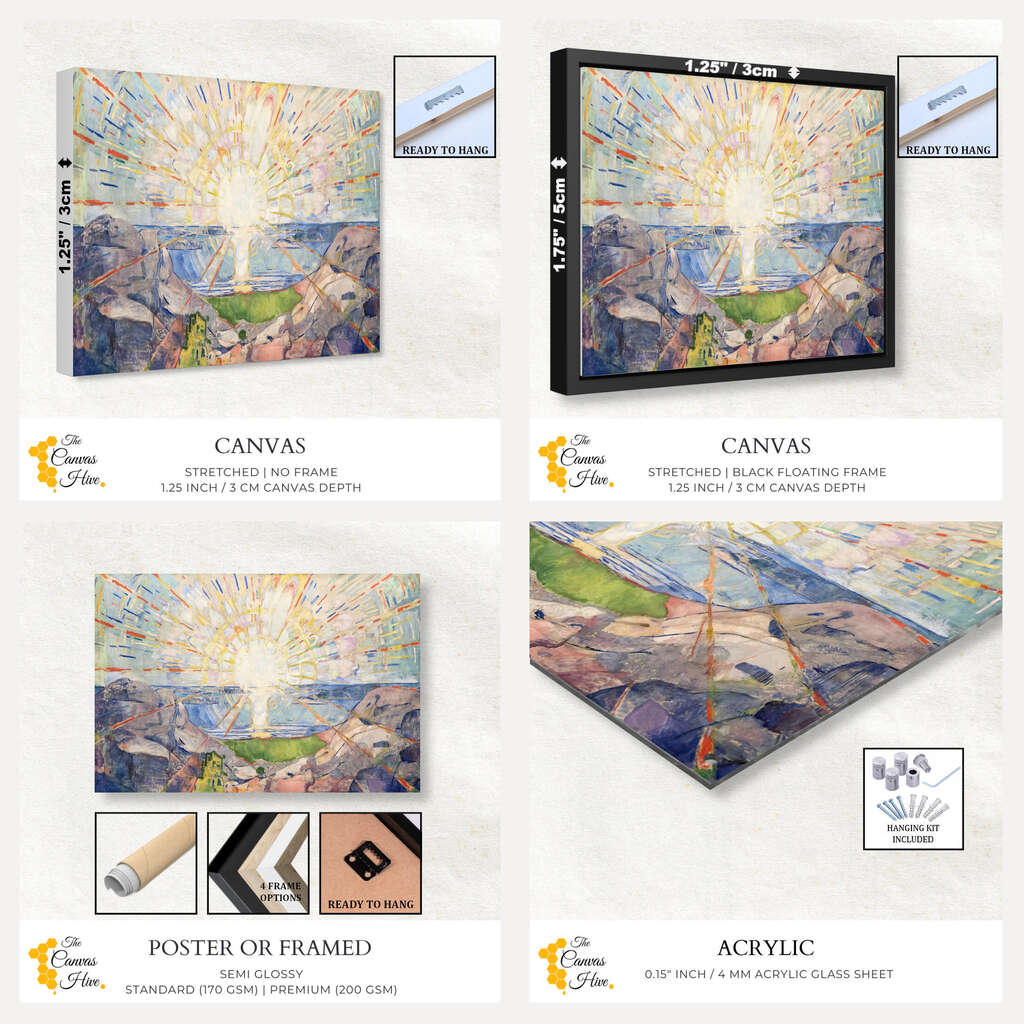 High-quality canvas material that has been tightly stretched and secured over a wooden frame. Comes with a pre-installed sawtooth hanger or hanging wire for easy hanging. The frame is made from high quality, low-flex pinewood.